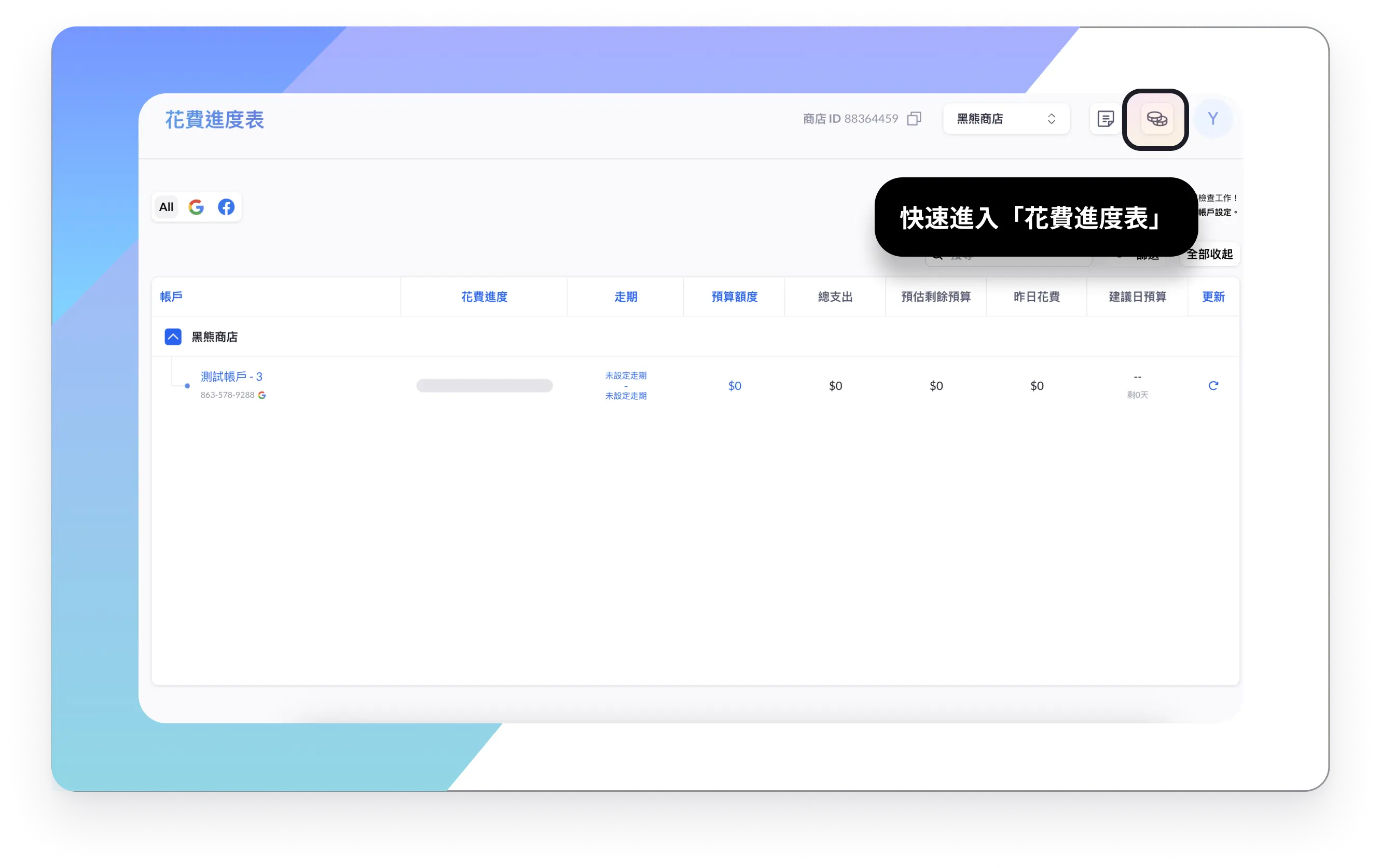 值得注意的是,不管你正在管理1間或是20間商店,在花費進度表中你可以一次查看所有商店的花費進度,不用費時一間一間的切換商店做檢查唷!